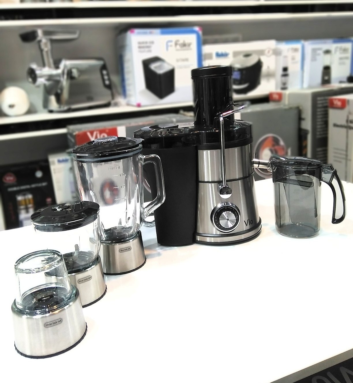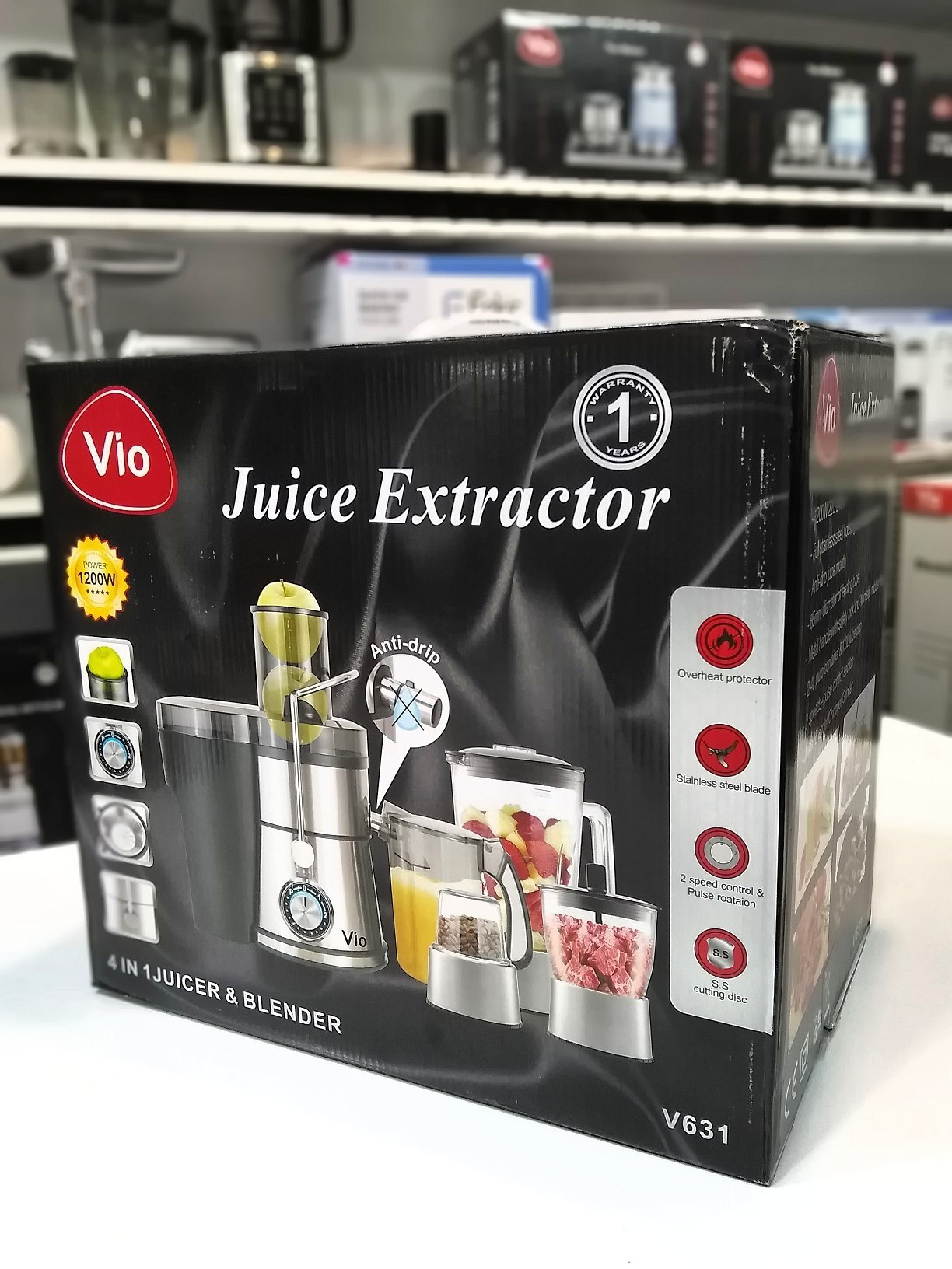آبمیوه گیری ۴ کاره ویو مدل V631، یک دستگاه همه‌فن‌حریف برای آشپزخانه شماست! با موتور قدرتمند 1200 وات، دهانه بزرگ 85 میلی‌متری و پارچ‌های شیشه‌ای، می‌توانید میوه‌ها و سبزیجات تازه را سریع و راحت آبگیری کنید، مواد را مخلوط کنید، خرد یا آسیاب نمایید. مجهز به سیستم عملکرد پالسی، پایه ضد لغزش و سیستم قطع اتوماتیک، ایمنی و راحتی را در هر بار استفاده تضمین می‌کند. یک انتخاب عالی برای تهیه آبمیوه و خوراکی‌های سالم و خوشمزه در کمترین زمان!
