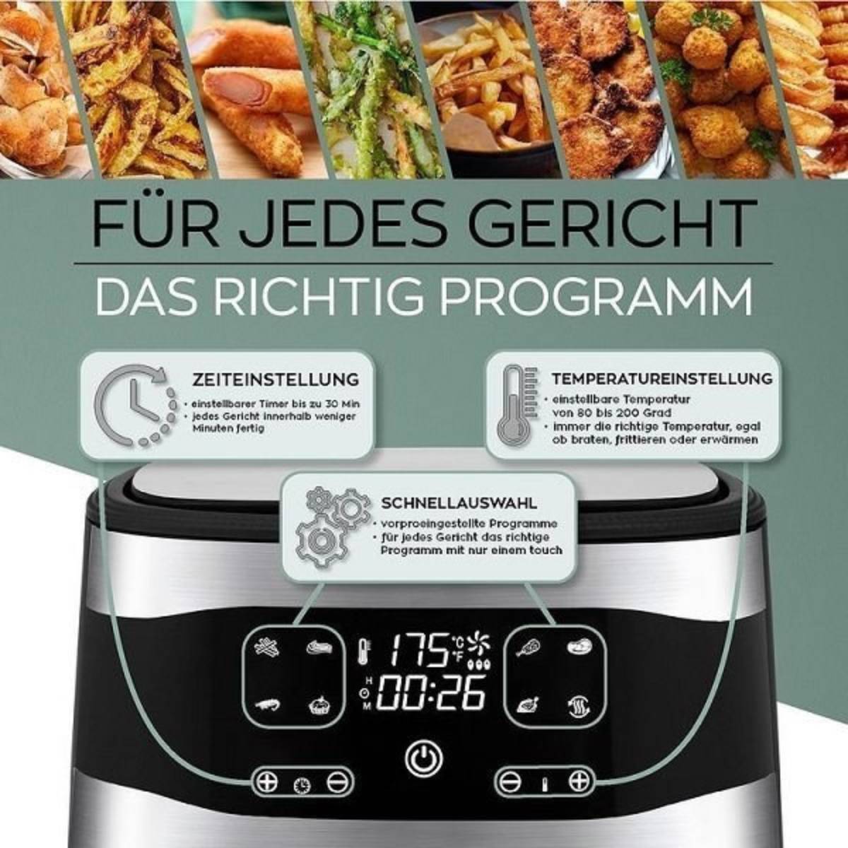 سرخ کن بدون روغن هنریچ آلمان با ظرفیت 8 لیتر و توان 1800 وات دارای پنل کامل لمسی و 8 برنامه پیش فرض غذایی
