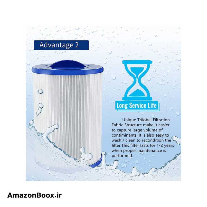 عمر طولانی — این فیلتر وان آب گرم دارای ساختار پارچه ای منحصر به فرد فیلتراسیون سه لوبی، مواد داکرون بادوام و کاربردی است که می تواند کارتریج فیلتر را قابل استفاده مجدد کند.