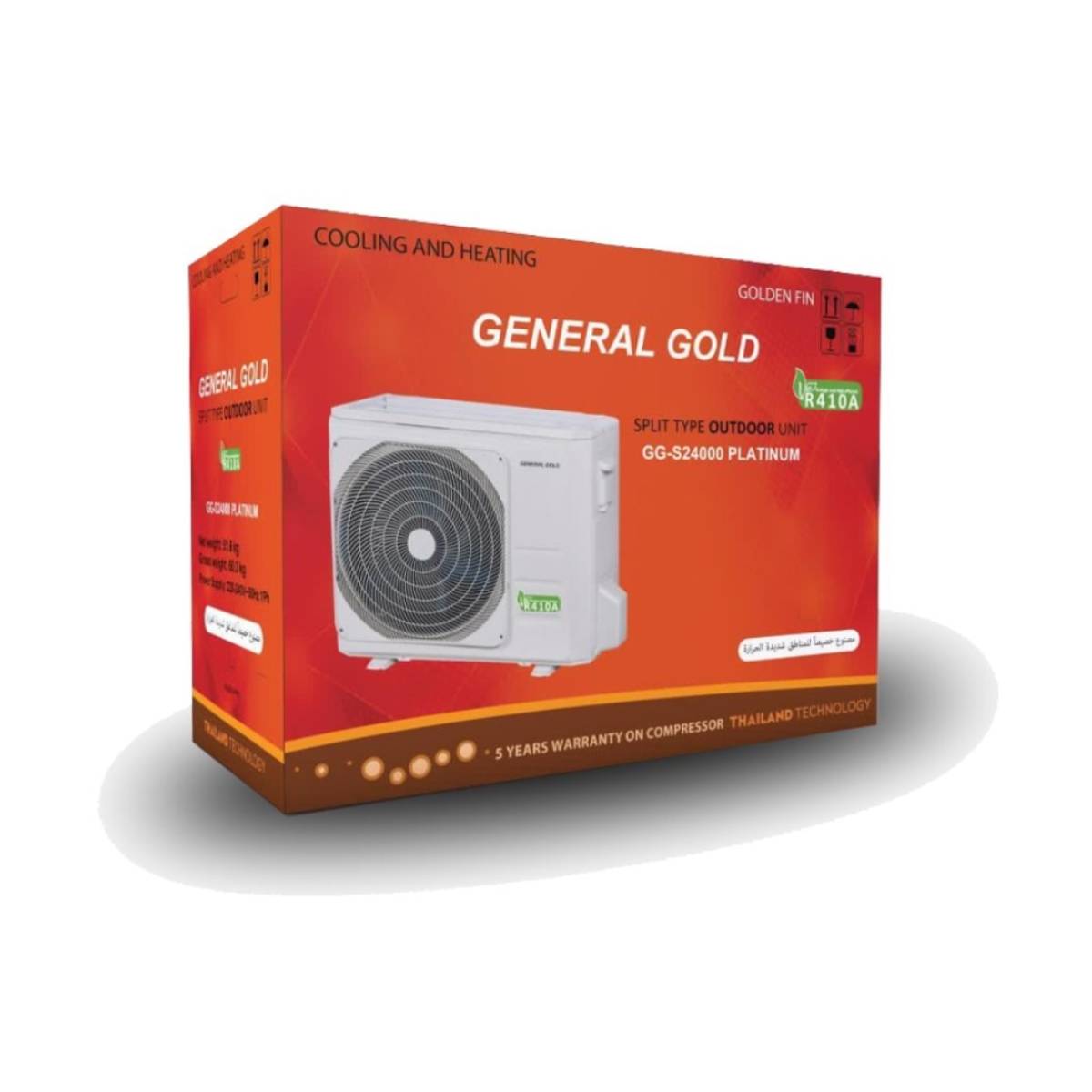 کولرگازی جنرال گلد مدل پلاتینیوم با ظرفیت 24000BTU برای سالن ها ٬ دفاتر و مغازه های بزرگ تا متراز 60 تا 80 متر را به راحتی جواب می دهد. عملکرد سرد و گرم را پوشش می دهد و این کولر باعث می شود تا در تمام فصول سال به وسیله ی دیگری نیاز نداشته باشید.