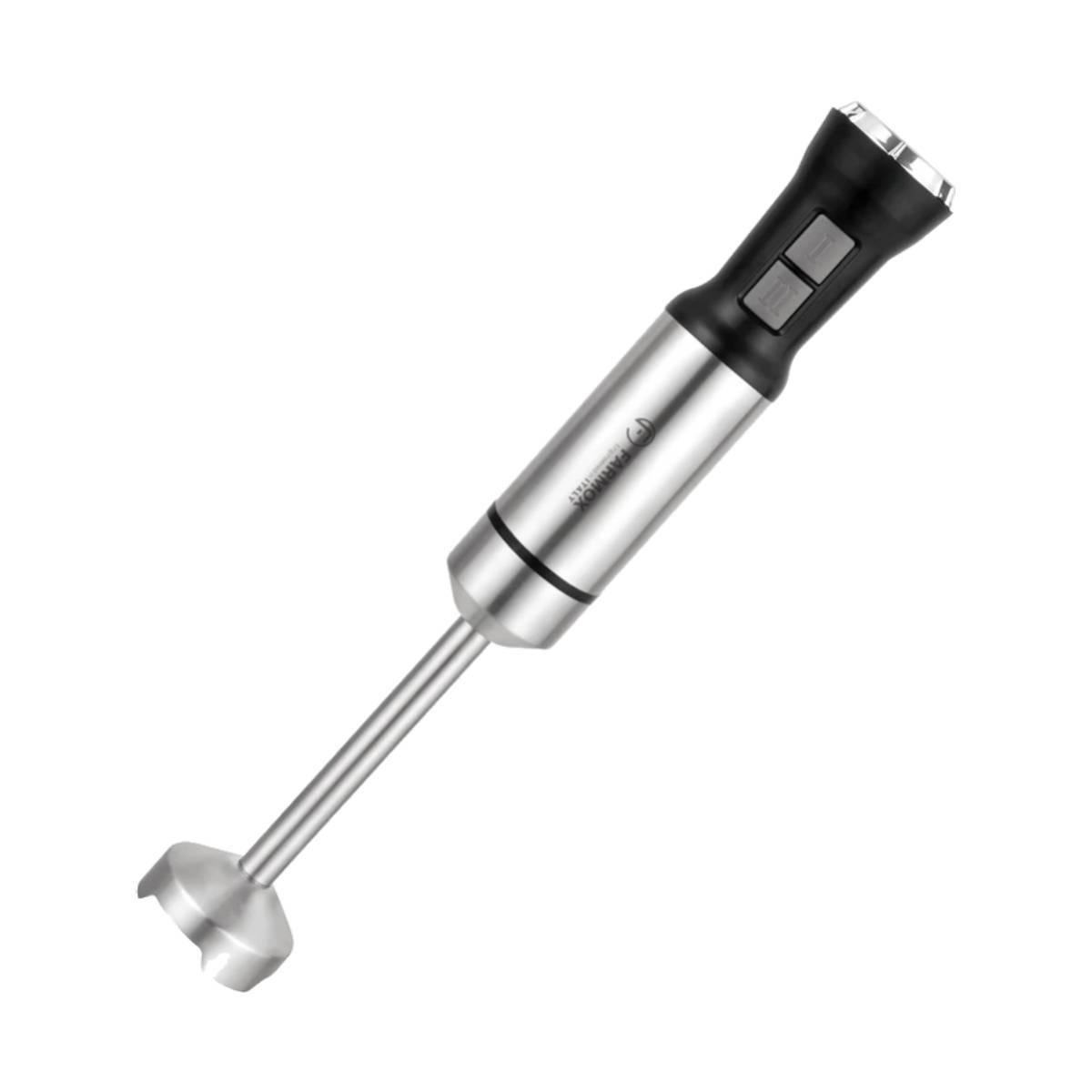 گوشت‌کوب برقی farmox مدل Fx 2217 از دستگاه‌های حرفه ای و کاربردی عرضه‌شده در بازار است. این محصول خوش‌ساخت از نظر زیبایی هم چیزی کم ندارد. محل قرارگیری دست روی آن طوری طراحی‌ شده که به‌خوبی در دست جای می‌گیرد و لغزشی ندارد. دسترسی به دکمه‌های کنترلی و پیچ تنظیم سرعت، آسان است. تیغه‌های استیل ضدزنگ طراحی ویژه‌ و چهار پره ای دارند تا بهترین عملکرد را داشته باشند. با استفاده از سری گوشت‌کوب، قدرت موتور صرف چرخاندن تیغه‌ها شده و برای له‌کردن موادی مانند گوشت، بادمجان و… استفاده می‌شود. با عوض‌کردن میله‌ی پایه، دسته‌ی ‌موتور به ظرف خردکن متصل می‌شود و آماده است تا موادغذایی درشت‌تر را توسط تیغه‌های تیز درون ظرف خردکن ریز کند. همراه این گوشت‌کوب  یک لیوان هم ارائه می‌شود که برای پایه‌ی گوشت‌کوب کاربرد دارد. با له‌کردن مواد داخل این لیوان، راندمان و راحتی کار با گوشت‌کوب بیشتر می‌شود. علاوه‌براین‌ها سری همزن نیز به همراه دستگاه عرضه می‌شود که برای هم‌زدن موادی مانند تخم‌مرغ، سس‌ها و خمیرهای نرم قابل‌استفاده است.موتور این مدل از گوشت کوب فارموکس بسیار پرقدرت و از جنس سیم پیچ مسی است ، تا قدرت و دوام و طول عمر بالا را با ان تجربه کنید .